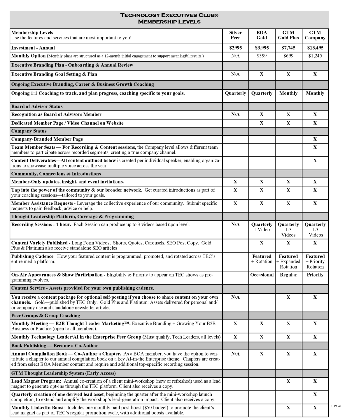 Each level below reflects a different way to participate — from establishing an executive presence, to activating thought leadership for business growth, to scaling visibility across an organization.